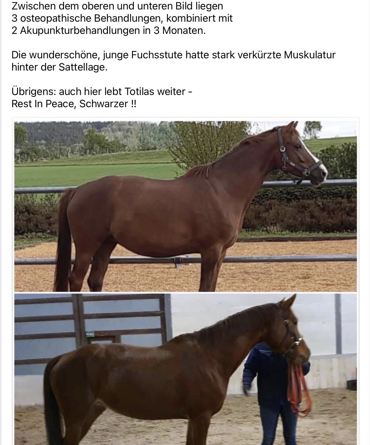 2009 habe ich als geprüfte und zertifizierte Groß- und Kleintierphysiotherapeutin und Akupunkteurin meine Praxis gegründet und darauf aufbauend Ausbildungen zur Osteopathin, Homöopathin und Tierheilpraktikerin abgeschlossen.
